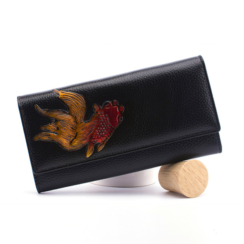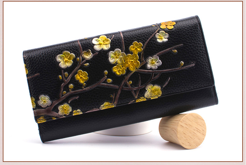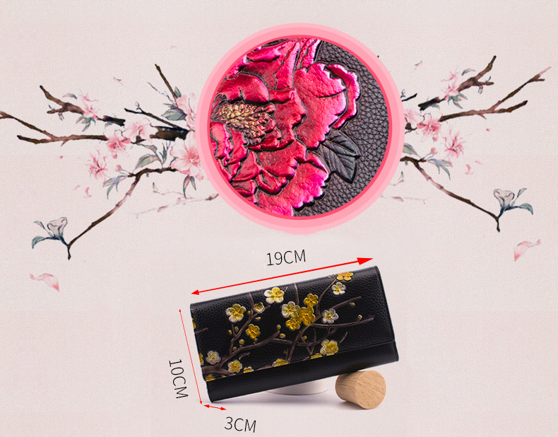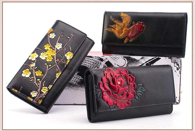 Novinka - Dlhá peňaženka v etnickom štýle z hovädzej kože
